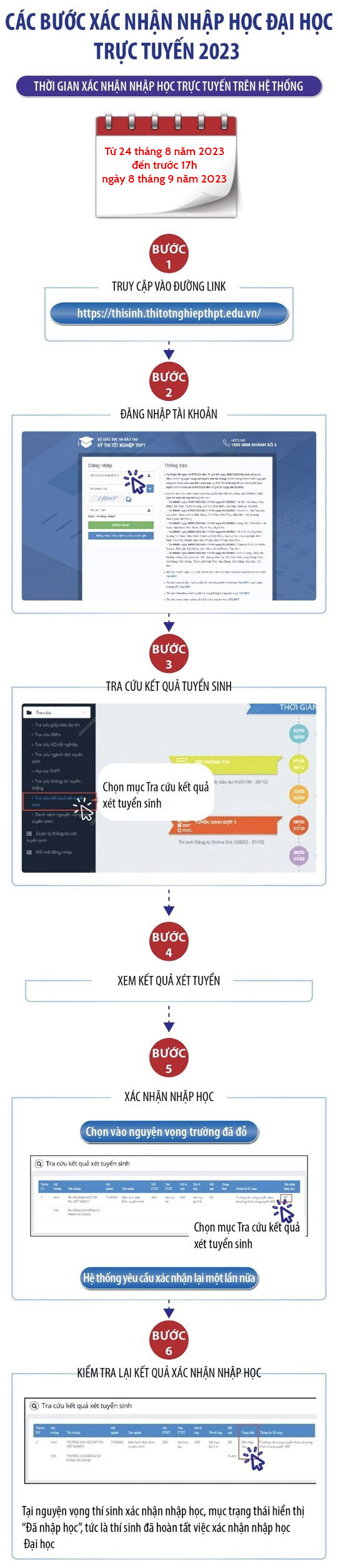 Đối với những thí sinh Thí sinh trúng tuyển trên hệ thống của Bộ GD&ĐT, bắt buộc phải đăng nhập vào hệ thống để xác nhận nhập học trực tuyến tại địa chỉ: https://thisinh.thitotnghiepthpt.edu.vn