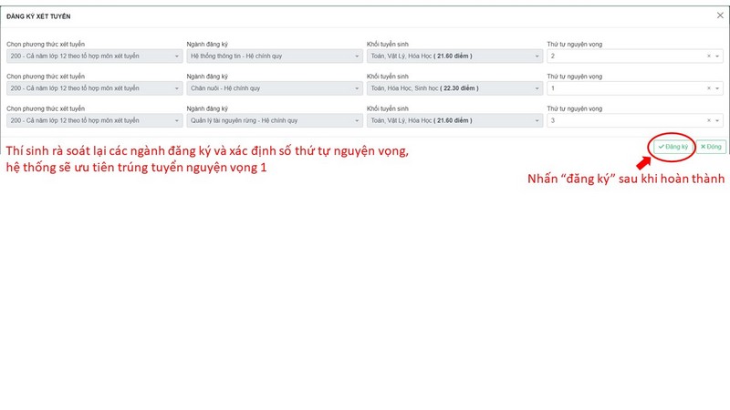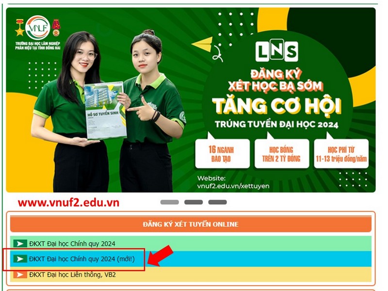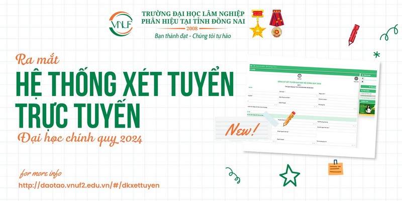Năm 2024, Phân hiệu trường Đại học Lâm nghiệp tại tỉnh Đồng Nai chính thức ra mắt hệ thống xét tuyển trực tuyến. Để đăng ký xét tuyển, thí sinh cần thực hiện 03 bước như sau: