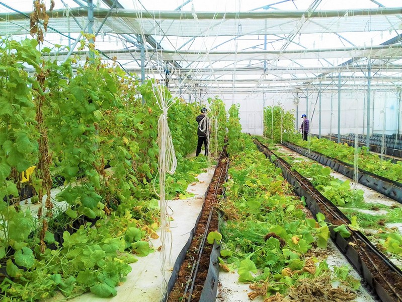 Dọn vệ sinh nhà kính, chuẩn bị cho vụ mùa dưa lứa kế tiếp