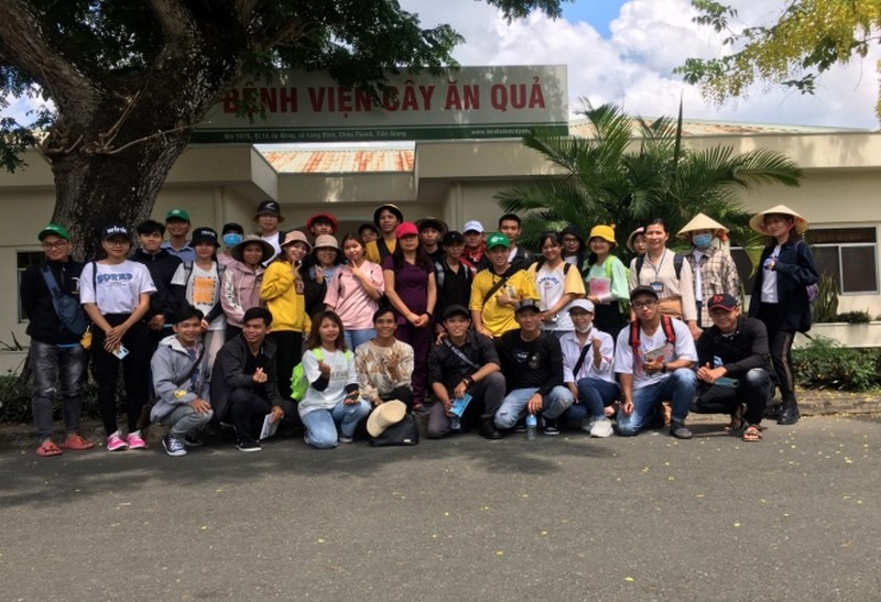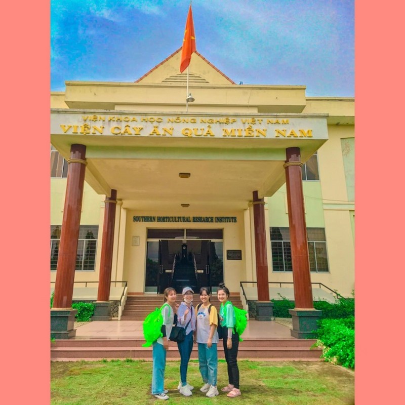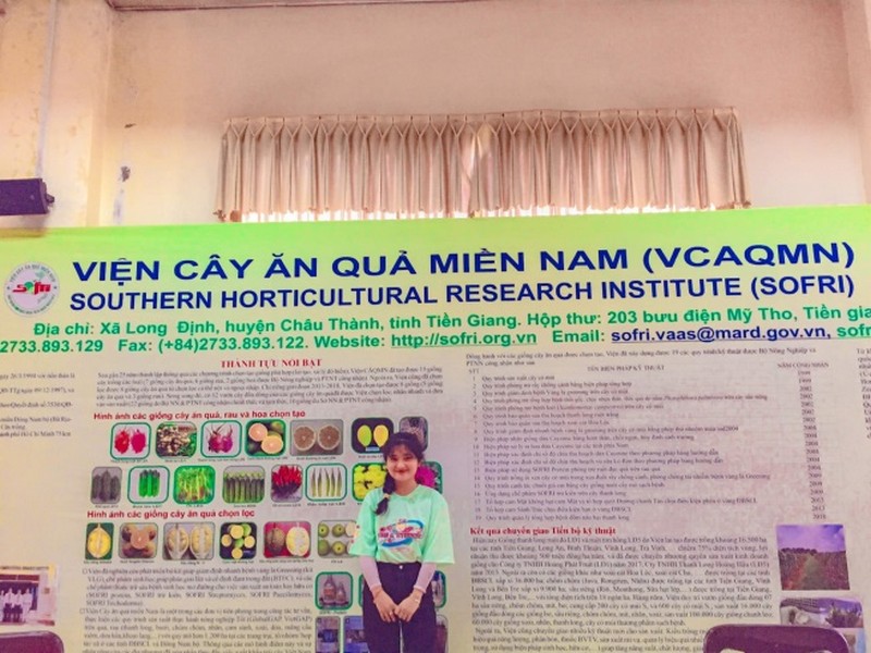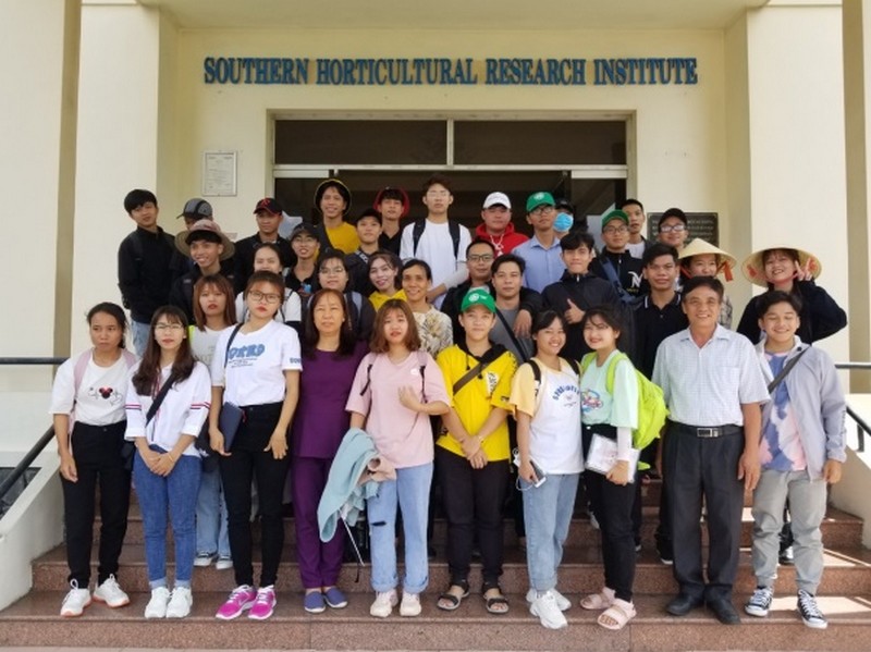Tại Viện Nghiên cứu Cây ăn quả Miền Nam, dưới sự hướng dẫn nhiệt tình của ThS. Lê Nguyễn Lan Thanh giúp chúng em tiếp cận với các thành tựu nghiên cứu nổi bật của Viện như: Thành tựu trong công tác chọn tạo giống cây trồng; Quy trình quản lý dịch hại tổng hợp trên cây trồng; Các mô hình trồng xen canh cây ăn quả giúp phòng trừ sâu bệnh; Kỹ thuật trồng thanh long theo hình chữ T (T- Bar); Các chế phẩm thuốc BVTV sinh học như SOFRI Protein, SOFRI trừ kiến, SOFRI Tricoderma; Nuôi cấy mô thực vật phục vụ sản xuất giống … Ngoài ra, chúng em còn được tham quan phòng trưng bày và giới thiệu sản phẩm phục vụ sản xuất, được xem và thưởng thức các sản phẩm chế biến của ngành trồng trọt như rượu chanh, kẹo gấc, mứt…, thăm khu vườn nhân giống cây ăn quả, cây rau và cây hoa ...