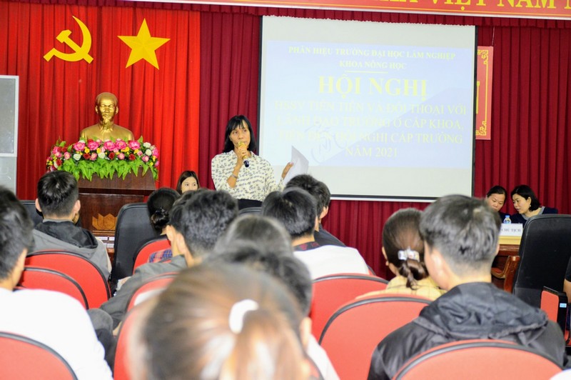 Tại hội nghị này, thay mặt lãnh đạo khoa Nông học, cô Trần Thị Hương – Phó Trưởng Khoa đã báo cáo kết quả học tập rèn luyện trong học kỳ 1 năm học 2020-2021 đồng thời đưa ra những đề xuất, giải pháp nhằm nâng cao chất lượng học tập trong toàn khoa. Hội nghị cũng là dịp để thầy và trò Khoa Nông học nhìn nhận lại những mặt được và chưa được trong quá trình xây dựng kế hoạch và vận hành chương trình học tập – rèn luyện – hoạt động của khoa. Đại diện lãnh đạo Khoa Nông học, cô Dương Thị Việt Hà đã có những chia sẻ vô cùng hữu ích và thân tình nhằm nâng cao hiệu quả học tập cho các bạn sinh viên.