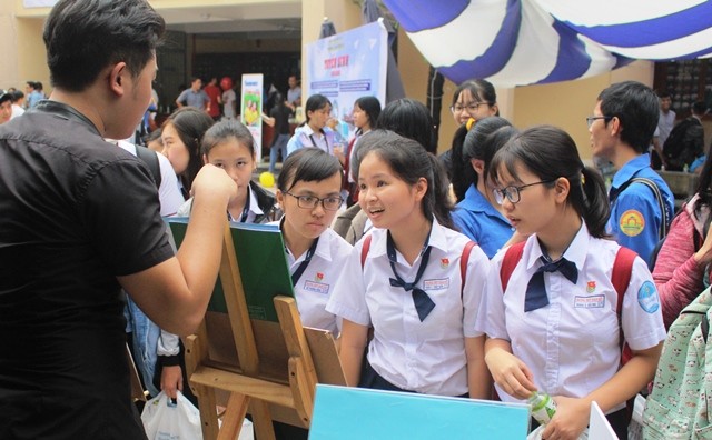 Tại buổi tư vấn trực tiếp tại hội trường, ngoài các câu hỏi liên quan đến các vấn đề quy chế thi THPT quốc gia, qui chế tuyển sinh, các thí sinh còn dành nhiều sự quan tâm đến vấn đề chương trình đào tạo, học phí, môi trường học tập và cơ hội việc làm sau khi ra trường. Cùng với các trường ĐH, CĐ, đại diện cho nhà trường TS. Mai Hải Châu – phó giám đốc, đã trả lời và giải đáp hầu hết các câu hỏi của thí sinh.