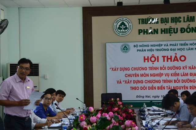 Tham dự Hội thảo, có đại diện các đơn vị: Về phía Bộ NN&PTNT có bà Trần Thị Mai Hương – Vụ tổ chức cán bộ; về phía Trường Đại học Lâm nghiệp có PGS.TS. Trần Quang Bảo – Phó hiệu trưởng; TS. Lã Nguyên Khang – Viện STR&MT; thầy Nguyễn Quang Huy – Viện STR&MT; về phía Sở NN&PTNT và Chi cục Kiểm lâm tỉnh Đồng Nai có ông Đoàn Duy Hưng – Hạt trưởng Hạt Kiểm lâm huyện Trảng Bom; bà Huỳnh Thị Ánh Nguyệt – Phòng QLBVR&BTTN; về phía Sở NN&PTNT và Chi cục Kiểm lâm tỉnh Bình Phước có ông Hồng Bá Khanh – Trưởng phòng QLBVR&BTTN; ông Hoàng Văn Tùng – Phó phòng QLBVR&BTTN; về phía Phân hiệu Trường Đại học Lâm nghiệp có TS. Vũ Thu Hương – Bí thư Đảng ủy, Quyền Giám đốc; TS. Mai Hải Châu – Phó Bí thư Đảng ủy, Phó Giám đốc cùng quý thầy, cô là trưởng, phó các đơn vị và các giảng viên có liên quan.