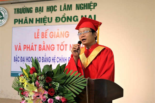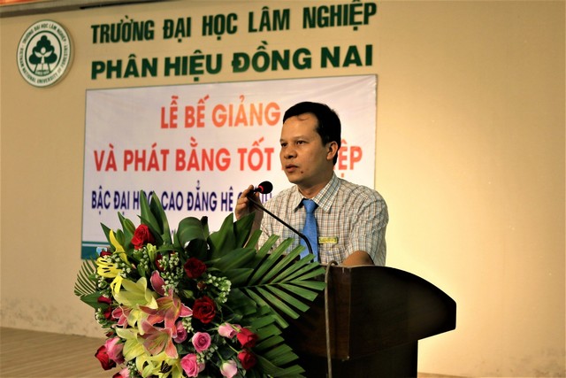 Phát biểu tại buổi Lễ, TS. Mai Hải Châu chúc mừng các tân kỹ sư/ tân cử nhân đã hoàn thành nhiệm vụ khóa học và hy vọng những các anh chị sẽ vận dụng được nhiều kiến thức từ chương trình đào tạo của Nhà trường vào công việc tại đơn vị công tác. Qua đó, TS. Mai Hải Châu cũng nhấn mạnh: tốt nghiệp ra trường không đồng nghĩa với kết thúc việc học và Phân hiệu Trường Đại học Lâm nghiệp luôn mở rộng cửa chào đón các anh, chị ở các bậc học cao hơn.
