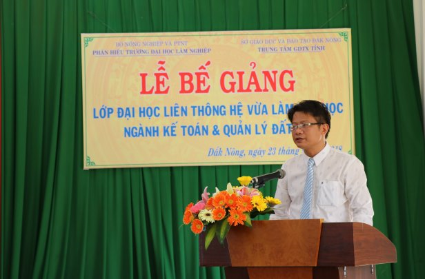 Tại buổi lễ, thay mặt Phòng Đào tạo, Thầy Nguyễn Văn Phú báo cáo kết quả khóa học đối với các lớp và công bố quyết định công nhận tốt nghiệp và cấp bằng tốt nghiệp của Hiệu trưởng Trường ĐHLN. Theo đó các lớp đào tạo tại Đăk Lăk có tỷ lệ tốt nghiệp đạt 84.6% (trong đó loại Khá đạt 20%) và các lớp tại Đăk Nông tỷ lệ tốt nghiệp đạt 81.8% (trong đó loại khá đạt 31%).