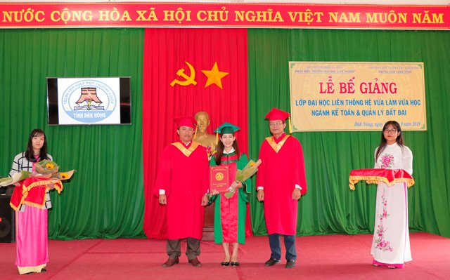 Trong 3 ngày 21,22 &23 /9/2018, Phân hiệu trường Đại học Lâm nghiệp long trọng tổ chức lễ bế giảng và trao bằng tốt nghiệp cho gần 100 sinh viên các lớp Đại học liên thông khóa 6A&6B ngành Kế toán, Quản lý đất đai tại tỉnh Đăk Nông và Đăk Lăk.