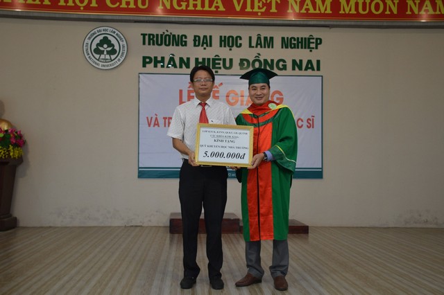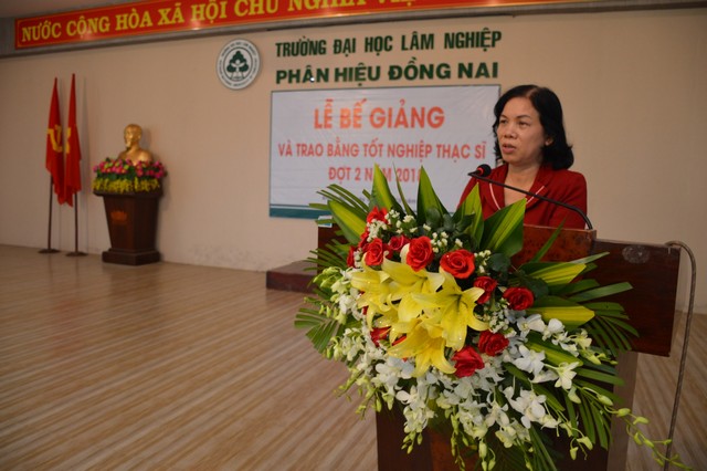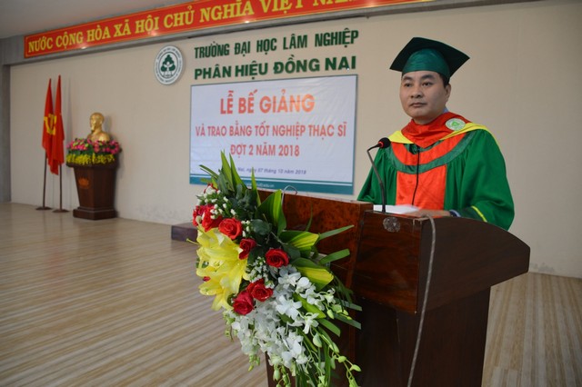 Đại diện cho 70 tân thạc sĩ, Học viên Lê Ngọc Tiên - chuyên ngành Quản lý kinh tế đã phát biểu bày tỏ lòng biết ơn sâu sắc đến Ban lãnh đạo, quý thầy, cô, các nhà khoa học của Nhà trường đã quan tâm, giúp đỡ để các học viên hoàn thành khóa học và trao tặng quỹ khuyến học Nhà trường; đồng thời xin hứa sẽ luôn sẵn sàng góp sức mình để cống hiến cho các hoạt động nghiên cứu, phát triển khoa học - kỹ thuật của đất nước, xứng đáng là những học viên được học tập, nghiên cứu tại Phân hiệu Trường Đại học Lâm Nghiệp - xứng đáng với danh hiệu Huân chương Độc lập hạng Nhất của Nhà trường.