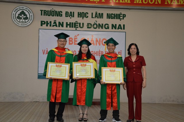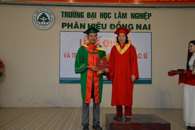 Tham dự buổi Lễ có sự hiện diện của TS. Vũ Thu Hương – Bí Thư Đảng ủy, Quyền Giám đốc Phân hiệu ĐHLN, TS. Mai Hải Châu – Phó Giám đốc, Ths. Cao Phi Long – Trưởng Ban Tuyên giáo Đảng ủy, Trưởng Phòng CT&CTSV; Thầy Nguyễn Văn Toàn – Trưởng phòng TCHC; TS. Đinh Quang Tuyến – Trưởng Phòng KHCN & HTQT; Ths.Đào Thị Thùy Dương – Phó trưởng Phòng KHCN & HTQT và sự có mặt của 70 tân Thạc sĩ cùng gia đình, người thân.