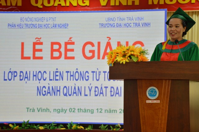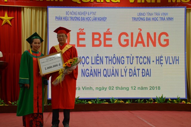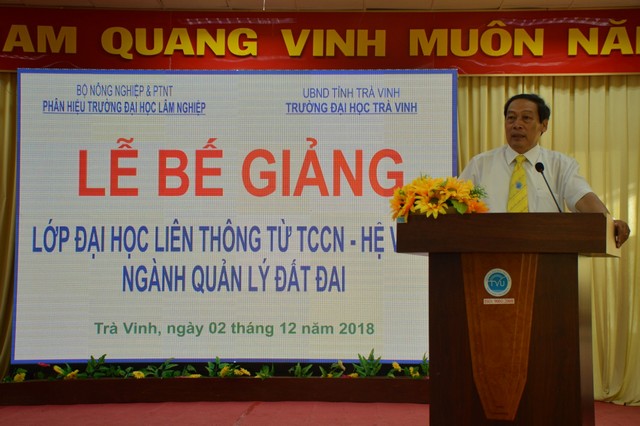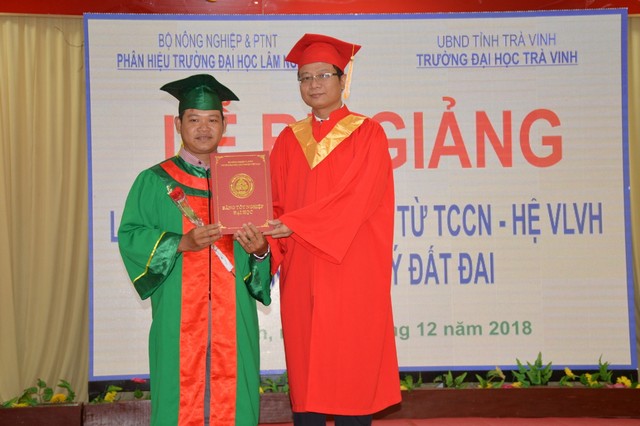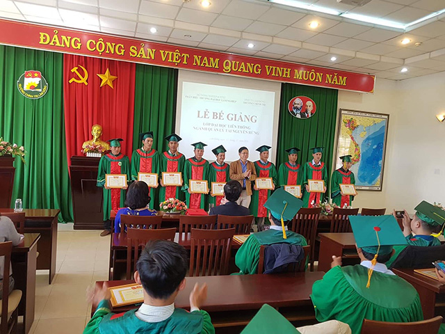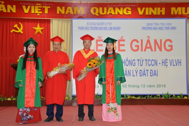 Thực hiện kế hoạch năm học 2018 – 2019, sáng ngày 01/12/2018, Phân hiệu Trường Đại học Lâm Nghiệp (Phân hiệu) đã phối hợp với các đơn vị liên kết đào tạo (Trường Đại học Trà Vinh và Trường Chính trị tỉnh Lâm Đồng) long trọng tổ chức Lễ bế giảng và phát bằng tốt nghiệp cho các lớp Đại học liên thông hệ vừa làm vừa học khóa 6B1 ngành Quản lý đất đai và ngành Quản lý tài nguyên rừng.