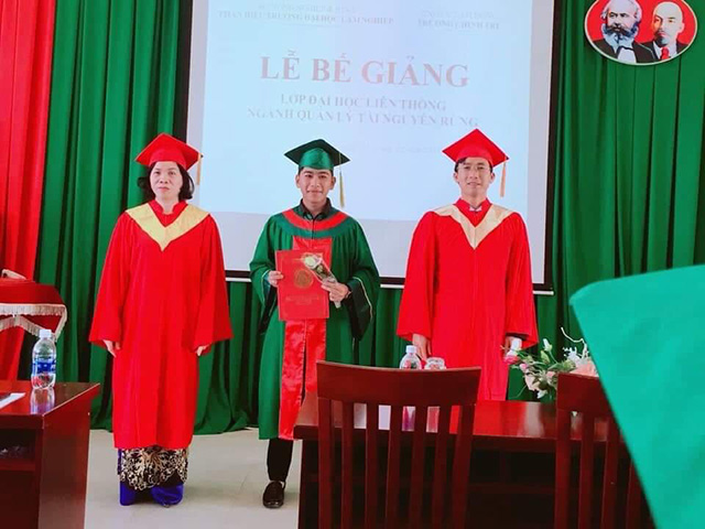 - Về phía Phân hiệu Trường Đại học Lâm nghiệp có cô Vũ Thu Hương - Bí thư Đảng ủy, Quyền Giám đốc Phân hiệu; thầy Mai Hải Châu – Phó Bí thư Đảng ủy, Phó Giám đốc Phân hiệu; thầy Cao Phi Long - Trưởng Ban tuyên giáo Đảng ủy, Trưởng Phòng CT&CT SV; thầy Nguyễn Văn Phú – Phụ trách Phòng Đào tạo và gần học viên tốt nghiệp về nhận bằng.