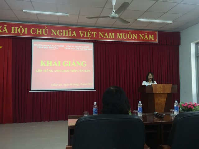 Sáng ngày 08/12/2018 tại Phòng họp A – Nhà A1. Phân hiệu trường Đại học Lâm nghiệp phối hợp với Công ty Giáo dục và Truyền thông Restars – Trung tâm anh ngữ Mai Lâm tổ chức khai giảng lớp tiếng anh giao tiếp căn bản miễn phí dành cho sinh viên nhà trường.