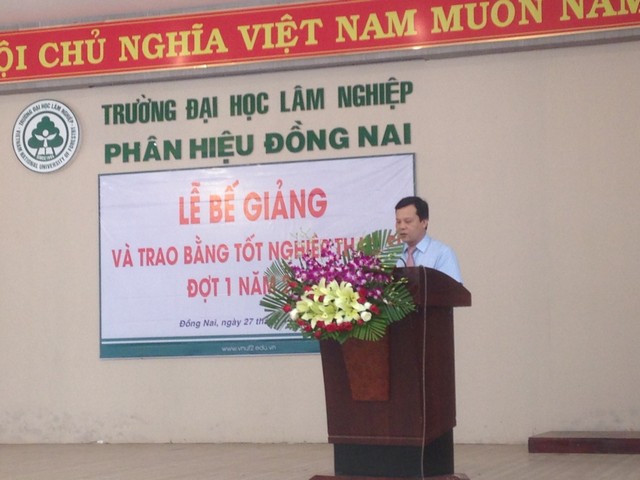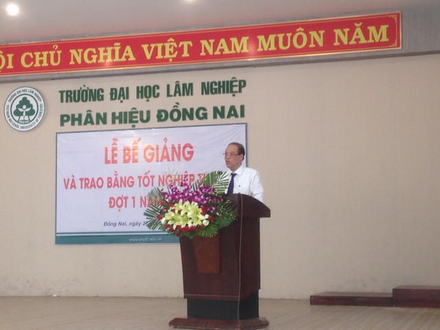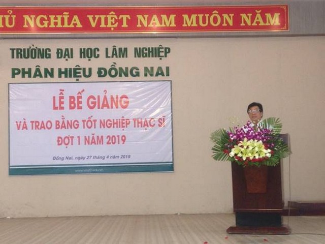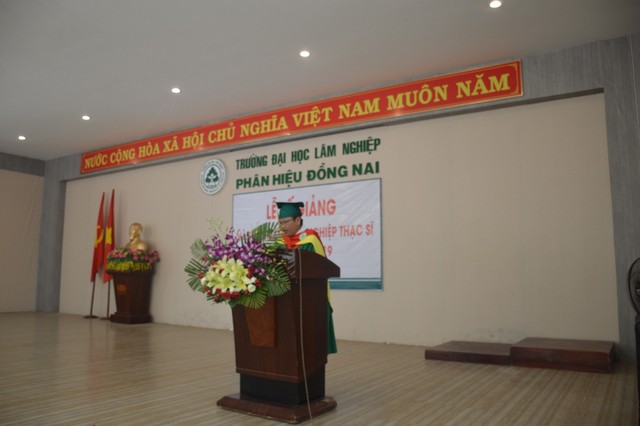 Phát biểu tại buổi lễ, NGND.GS.TS Trần Văn Chứ chúc mừng 49 tân thạc sỹ đã hoàn thành khóa học và đánh giá cao kết quả đạt được của học viên, đồng thời bày tỏ mong muốn các tân thạc sỹ với nền tảng kiến thức đã đạt được luôn sẵn sàng đóng góp trí tuệ của bản thân để cống hiến cho các hoạt động nghiên cứu khoa học, giảng dạy, phát triển khoa học - kỹ thuật của đất nước, xứng đáng là những học viên được học tập, nghiên cứu tại Phân hiệu Trường Đại học Lâm Nghiệp - xứng đáng với danh hiệu Huân chương Độc lập hạng Nhất của Nhà trường.