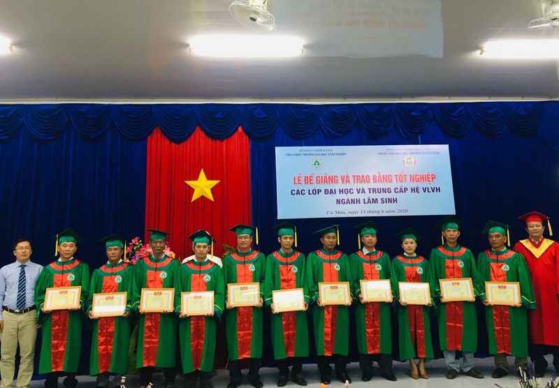 Trong các ngày từ 12 đến 14/06/2020, Phân hiệu Trường Đại học Lâm nghiệp tại tỉnh Đồng Nai đã long trọng tổ chức Lễ bế giảng và trao bằng tốt nghiệp Đại học cho 98 sinh viên khóa 7 liên thông từ Trung cấp lên Đại học các ngành: Kế toán và Lâm sinh và 71 học sinh bậc Trung cấp ngành Lâm sinh hệ Vừa làm vừa học, tại tỉnh Ninh Thuận, tỉnh Khánh Hòa và tỉnh Cà Mau. Buổi Lễ diễn ra trong không khí trang trọng, hân hoan và tràn đầy cảm xúc.