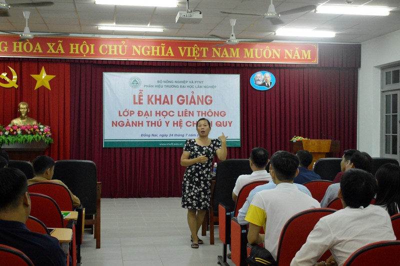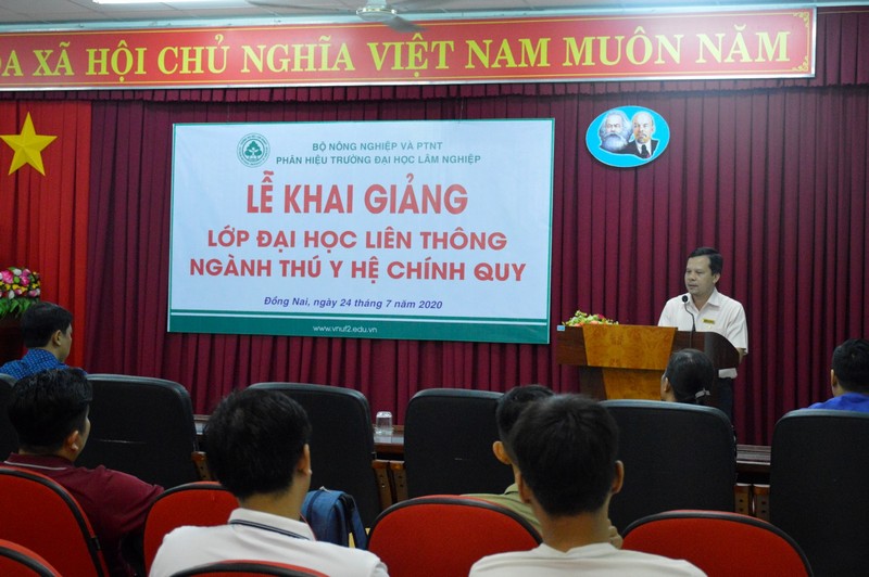 Thực hiện kế hoạch đào tạo năm học 2019 – 2020, tối ngày 24/7/2020 tại Phòng họp A - Nhà A, Phân hiệu Trường Đại học Lâm nghiệp long trọng tổ chức Lễ khai giảng lớp Đại học liên thông K65B2_LT_Thú y_CQ.