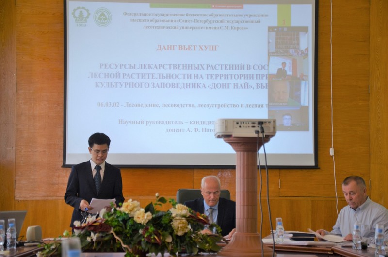 Ngày 28/8/2020, tại Trường Đại học kỹ thuật Lâm nghiệp Saint-Petersburg (Liên bang Nga) đã tổ chức Lễ bảo vệ luận án Tiến sĩ cho Nghiên cứu sinh (NCS) Đặng Việt Hùng, chuyên ngành: Khoa học lâm nghiệp, lâm sinh, quản lý rừng và kiểm kê rừng.