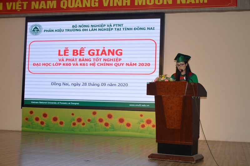 Nhằm tổ chức tổng kết đánh giá toàn diện quá trình đào tạo, sáng ngày 28/9, Phân hiệu Trường Đại học Lâm Nghiệp tại Đồng Nai đã long trọng tổ chức Lễ bế giảng và phát bằng tốt nghiệp cho các lớp Đại học Khóa 60 (niên khóa 2015-2020) và Khóa 61 (niên khóa 2016-2020) hệ chính quy.