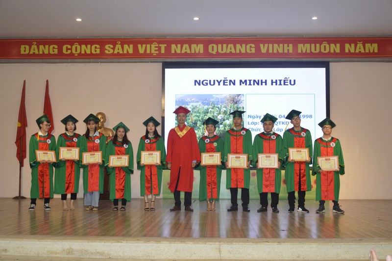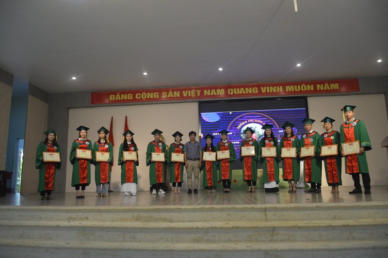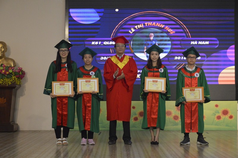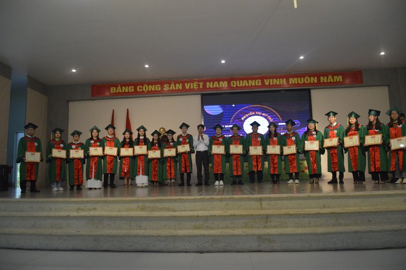 Tại buổi Lễ, ThS. Nguyễn Văn Phú – Phó trưởng Phòng Phụ trách Phòng Đào tạo công bố Quyết định công nhận tốt nghiệp; ThS. Phạm Văn Sỹ - Phó trưởng Phòng CT&CT SV đọc các quyết định khen thưởng các tập thể, cá nhân có nhiều đóng góp tích cực trong công phong trào học tập, rèn luyện; danh hiệu thi đua toàn Khóa học (gồm 44 sinh viên là Ban đại diện lớp hoàn thành xuất sắc nhiệm vụ; 04 sinh viên đạt danh hiệu sinh viên Xuất sắc toàn khóa; 37 sinh viên đạt danh hiệu Sinh viên Giỏi toàn khóa; 31 sinh viên đạt danh hiệu Sinh viên Khá toàn khóa).