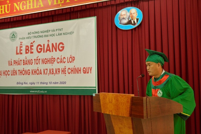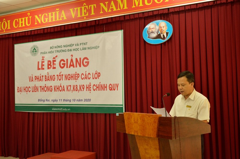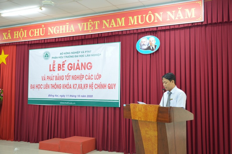 Thực hiện kế hoạch năm học 2019 – 2020, sáng 11/10/2020, Phân hiệu Trường Đại học Lâm Nghiệp tại Đồng Nai long trọng tổ chức Lễ bế giảng và phát bằng tốt nghiệp cho các lớp Đại học liên thông khóa 7, khóa 8 và khóa 9 hệ chính quy.