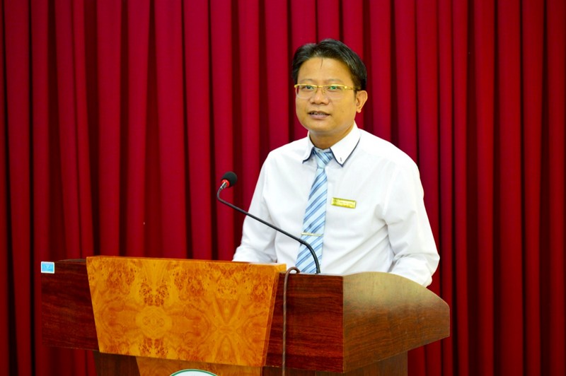 Tại buổi lễ, TS. Đinh Quang Tuyến công bố quyết định trúng tuyển cao học khóa 28B, đợt 2 năm 2020.