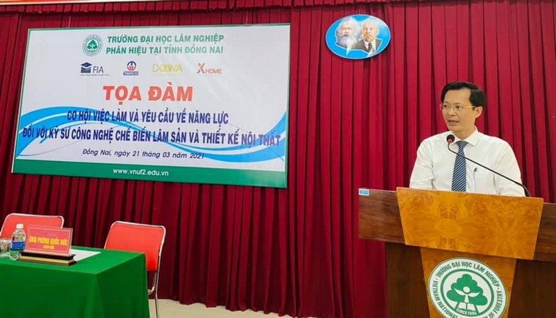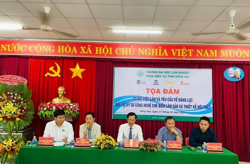 Ngày 21/03/2021, Phân hiệu Trường Đại học Lâm nghiệp tại tỉnh Đồng Nai phối hợp với Hiệp hội gỗ và thủ công mỹ nghệ tỉnh Đồng Nai (DOWA), Tập đoàn TAVICO và Công ty cổ phần XHOME tổ chức buổi Tọa đàm “Cơ hội và việc làm và yêu cầu về năng lực đối với kỹ sư Công nghệ chế biến lâm sản và Thiết kế nội thất.