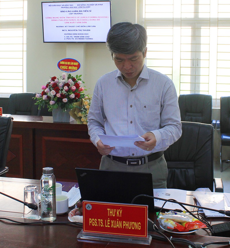 Hội đồng đã thảo luận và thống nhất: Hình thức và Nội dung của Luận án đã đáp ứng đầy đủ yêu cầu của một luận án tiến sĩ, chuyên ngành: Kỹ thuật chế biến lâm sản; mã số: 9549001 với số phiếu tán thành là 07/07. Thay mặt Hội đồng, GS.TS. Phạm Văn Chương – Chủ tịch Hội đồng đã đọc bản Quyết nghị của Hội đồng, theo đó đã nêu rõ được những kết quả chính, những đóng góp mới của Luận án cho khoa học và thực tiễn, đồng thời cũng chỉ rõ những thiếu sót về nội dung, hình thức của Luận án để NCS tiếp thu và khắc phục.
