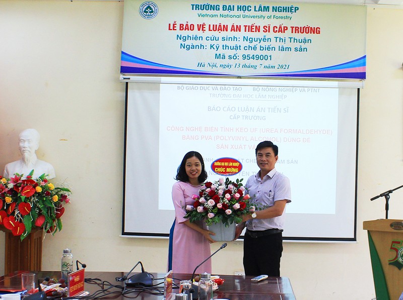 Kết thúc Lễ bảo vệ, Luận án của NCS Nguyễn Thị Thuận đã được Hội đồng đánh giá cao về tính khoa học và thực tiễn. Với việc bảo vệ thành công trước Hội đồng cấp Trường, NCS Nguyễn Thị Thuận xứng đáng nhận học vị Tiến sĩ. Hội đồng đã đề nghị Hiệu trưởng Trường Đại học Lâm nghiệp cấp bằng Tiến sĩ, chuyên ngành: Kỹ thuật chế biến Lâm sản cho NCS Nguyễn Thị Thuận.