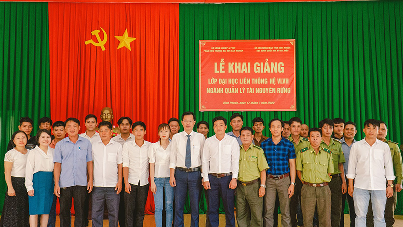 Thực hiện kế hoạch đào tạo năm học 2022-2023, sáng ngày 17/7/2022 tại Vườn Quốc Gia Bù Gia Mập, tỉnh Bình Phước, Phân hiệu Trường Đại học Lâm nghiệp tại tỉnh Đồng Nai long trọng tổ chức Lễ khai giảng lớp K67A1_LT_QLTNR-VLVH.
