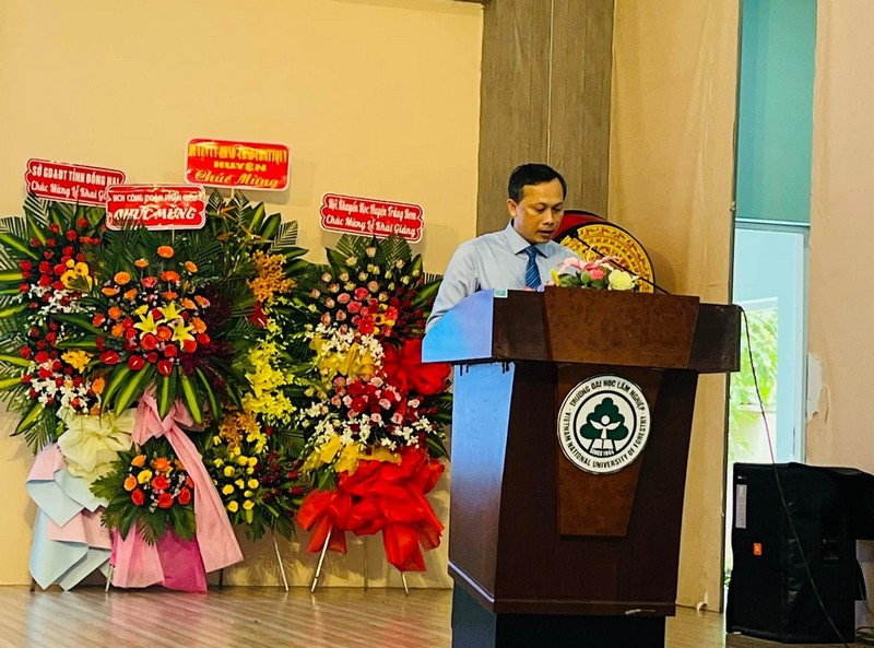 Tại buổi lễ, Thầy Nguyễn Trường Sơn - Hiệu trưởng nhà trường đã đọc diễn văn khai giảng năm học mới. Đánh giá, tổng kết những kết quả nhà trường đã đạt được trong năm học vừa qua. Một năm học vô cùng đặc biệt, là năm học đầu tiên Trường đi vào hoạt động giáo dục, là năm đầu tiên tình hình đại dịch Covid-19 diễn ra hết sực phức tạp, khó lường. Song với sự cố gắng, sự quyết tâm của toàn thể CBVC, của các em học sinh và toàn thể quý PHHS của nhà trường; Trường THPT Lâm Nghiệp Đồng Nai đã có những thành quả rất khả quan trong công tác giáo dục; đã tích cực đổi mới một cách hiệu quả về phương pháp dạy học hiện đại để đáp ứng phù hợp hơn với đặc điểm, tình hình của xã hội, của học sinh... nhằm phát triển toàn diện và hình thành nhân cách của học sinh theo mục tiêu giáo dục mà nhà trường đã đề ra.