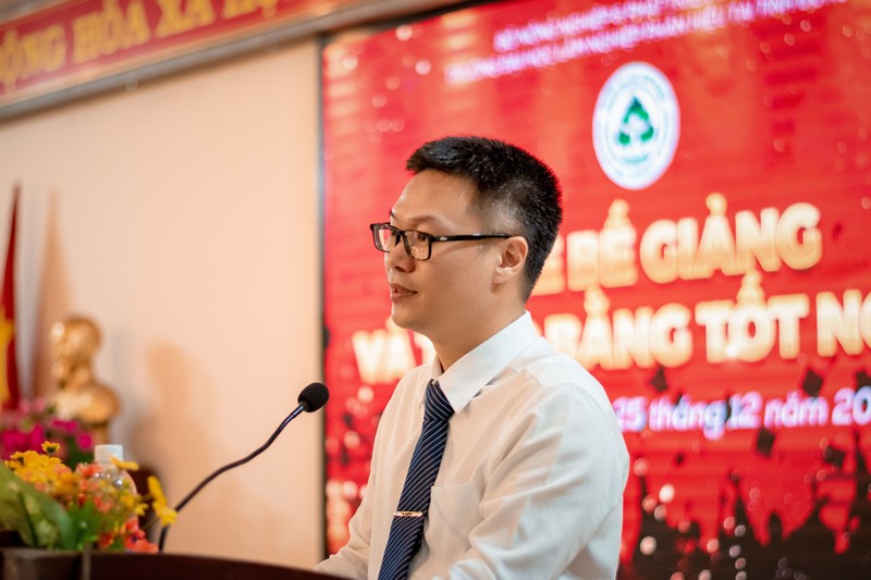Phát biểu tại Lễ bế giảng, TS. Nguyễn Sỹ Hà chúc mừng 320 tân Cử nhân, Kỹ sư đã hoàn thành xuất sắc khóa học; đồng thời bày tỏ mong muốn với những nền tảng khoa học cơ bản, kiến thức sâu về chuyên ngành, phương pháp nghiên cứu khoa học hiện đại đã tiếp thu được quá trình học tập, rèn luyện cùng với trí tuệ của bản thân sẽ giúp các anh, chị tân Kỹ sư sớm tìm được việc làm đúng chuyên ngành đào tạo. Từ đó, có nhiều đóng góp cho lĩnh vực công tác tại đơn vị và góp phần phát triển khoa học - kỹ thuật, xây dựng Tổ quốc Việt Nam xã hội chủ nghĩa. Qua đây, TS. Nguyễn Sỹ Hà nhấn mạnh: ra trường không đồng nghĩa với kết thúc việc học. Vì vậy, hy vọng rằng các anh, chị sẽ tiếp tục học tập nâng cao trình độ, chuyên môn, nghiệp vụ bằng nhiều hình thức và nhà trường luôn sẵn sàng chào đón các anh, chị ở bậc học cao hơn.