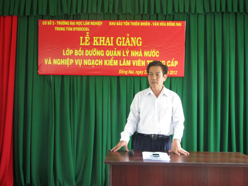 Thực hiện nhiệm vụ Đào tạo bồi dưỡng công chức kiểm lâm năm 2012 do Bộ Nông nghiệp và PTNT giao, kế hoạch đào tạo đã được Giám đốc phê duyệt, ngày 25 tháng 6 năm 2012 Trung tâm Đào tạo và bồi dưỡng công chức Kiểm lâm thuộc Cơ sở 2 - Đại học Lâm nghiệp phối hợp với Khu Bào tồn thiên nhiên – Văn hóa Đồng Nai tổ chức khai giảng lớp Bồ dưỡng ngạch Kiểm lâm viên tại Thị Trấn Vĩnh Cửu tỉnh Đồng Nai.