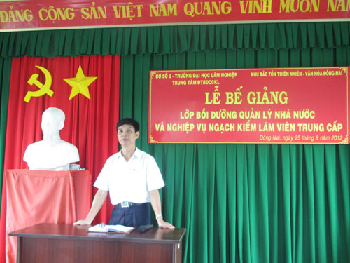 Ngày 25 tháng 8 năm 2012 Cơ sở 2 Trường Đại học Lâm nghiệp phối hợp với Khu Bảo tồn thiên nhiên-Văn hóa Đồng Nai tổ chức Lễ bế giảng lớp Bồi dưỡng Quản lý nhà nước và nghiệp vụ ngạch kiểm lâm viên trung cấp mở tại Thị trấn Vĩnh Cửu huyện Vĩnh Cửu tỉnh Đồng Nai.
