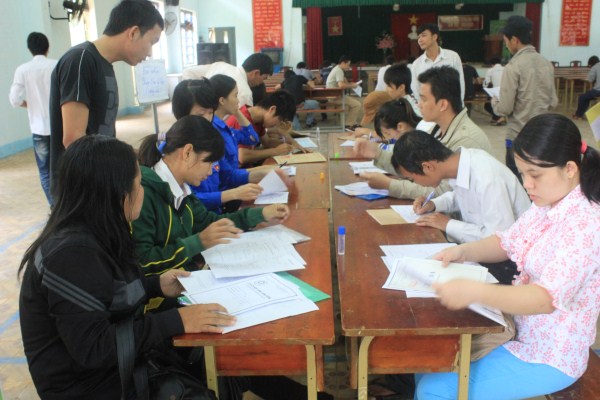 Sinh viên tình nguyện hướng dẫn các bạn Học sinh đăng ký thủ tập nhập học