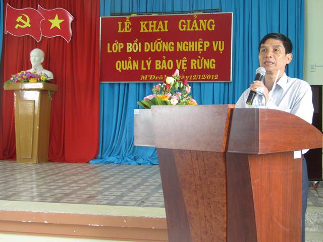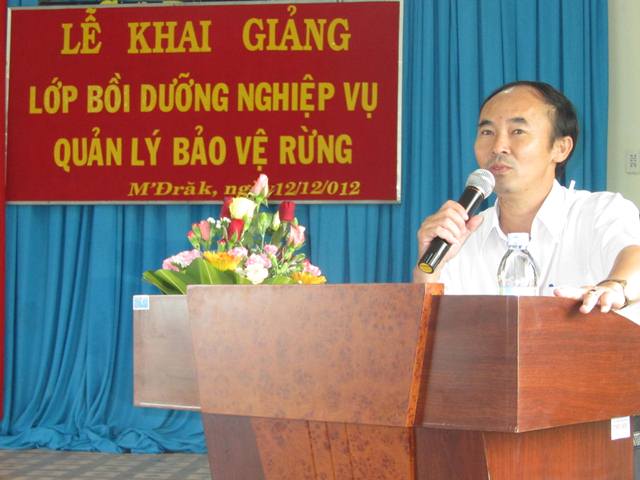 Sau các nghi thức của buổi lễ, thầy Phạm Bá Hanh phát biểu khai mạc khoá học, trong đó nêu rõ: Khoá học sẽ trang bị cho người học những kiến thức và kỹ năng về: Các Quy định trong các Quy chế quản lý các loại rừng hiện hành của Nhà nước, Kỹ thuật Quản lý bảo vệ rừng, Phòng cháy chữa cháy rừng, Xử lý vi phạm pháp luật trong Quản lý rừng, Bảo vệ rừng, Quản lý lâm sản cả trong xử lý hành chính và xử lý hình sự. Yêu cầu đối với học viên, giảng viên nghiêm túc thực hiện đúng Chương trình học tập, đúng các quy định của nhà trường.