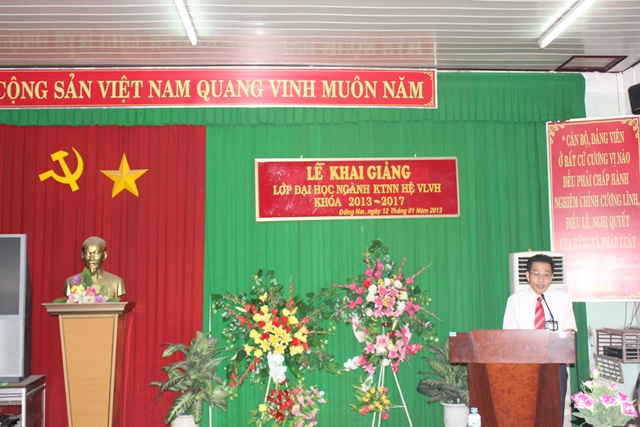Phát biểu khai giảng lớp học, TS. Nguyễn Quang Hà đã trân trọng cảm ơn sự quan tâm hỗ trợ, giúp đỡ của lãnh đạo tỉnh Đồng Nai và kỳ vọng các sinh viên của lớp sẽ nỗ lực học tập, đạt kết quả cao nhất trong toàn bộ khóa học.