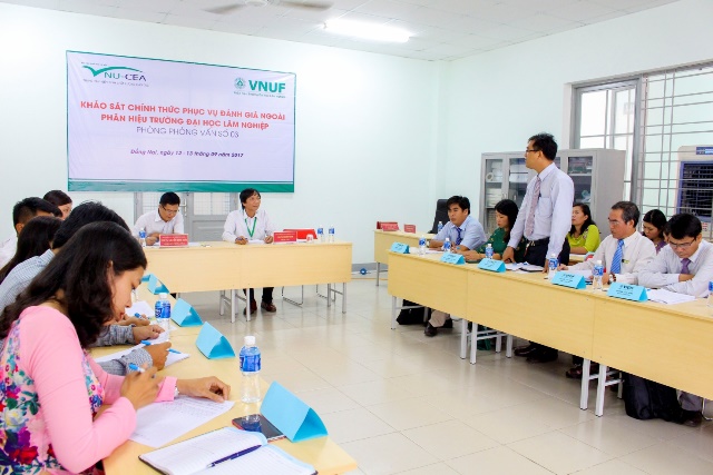 Tham gia Đoàn chuyên gia Đánh giá ngoài, có GS.TSKH. Bành Tiến Long – Trưởng đoàn; PGS.TS. Nguyễn Mạnh Khải – Thành viên Thường trực; PGS.TS. Huỳnh Văn Chương – Thành viên; PGS.TS. Bùi Duy Cam - Thành viên; PGS.TS. Đào Ngọc Tiến – Thành viên; TS. Ngô Tuấn Anh – Thành viên; Ths. Phạm Vương - Giám sát; Về phía Trường Đại học Lâm nghiệp, có PGS.TS. Nguyễn Văn Tuấn – Phó Hiệu trưởng; PGS.TS. Trần Quang Bảo – Phó Hiệu trưởng, Phụ trách Phân hiệu cùng quý thầy, cô trong Đảng ủy, Ban Giám đốc, Trưởng, Phó các đơn vị trực thuộc Phân hiệu.