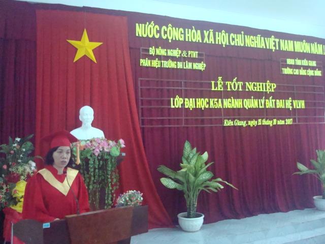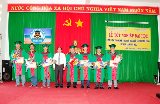 Trong các ngày 14 và 15/10/2017, Phân hiệu Trường Đại học Lâm nghiệp đã long trọng tổ chức Lễ bế giảng và phát bằng tốt nghiệp cho 130 học viên các lớp Đại học và Đại học liên thông hình thức VLVH các ngành Kế toán, Quản lý đất đai và Quản lý tài nguyên rừng tại tỉnh Đăk Nông, Lâm Đồng, Kiên Giang, Hậu Giang và Cà Mau.