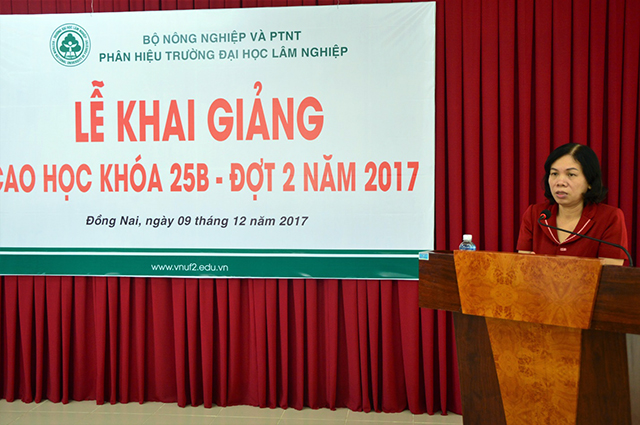 Phát biểu tại Lễ khai giảng, TS. Vũ Thu Hương chúc mừng và đánh giá cao sự nỗ lực của các học viên trong kỳ thi tuyển sinh cao học đợt 2 năm 2017; đồng thời khẳng định Phân hiệu Trường Đại học Lâm nghiệp luôn là địa chỉ đáng tin cậy được học viên lựa chọn làm nơi học tập, nâng cao trình độ của mình. Qua đó, TS. Vũ Thu Hương giao nhiệm vụ cho các đơn vị phòng, khoa trực thuộc Phân hiệu theo chức năng, nhiệm vụ của mình, tạo mọi điều kiện tốt nhất để các học viên có thể hoàn thành xuất sắc khóa học.