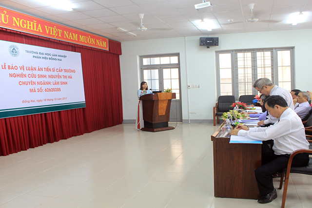 Sáng 16/12/2017, Trường Đại học Lâm nghiệp đã tổ chức Lễ bảo vệ luận án Tiến sĩ cấp Trường cho Nghiên cứu sinh (NCS) Nguyễn Thị Hà, chuyên ngành Lâm sinh; mã số 62620205