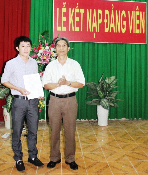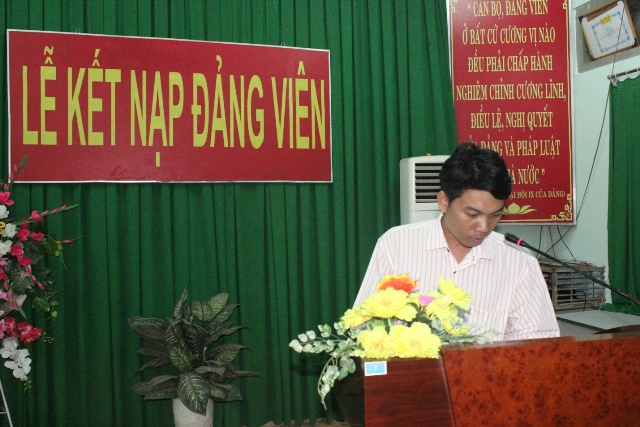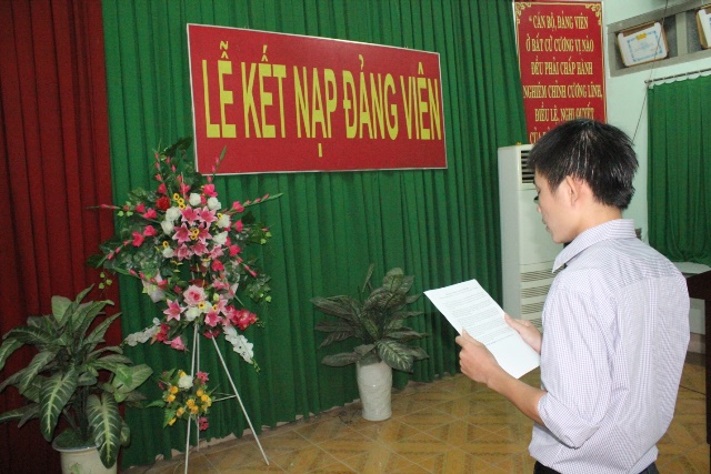 Trước cờ Đảng, cờ nước và chân dung Chủ tịch Hồ Chí Minh, Đ/c Phan Thanh Nhật - Đảng viên mới đã xúc động đọc lời tuyên thề và bày tỏ niềm vinh dự, tự hào khi được đứng trong hàng ngũ Đảng Cộng sản Việt Nam. Đ/c Đảng viên mới đã dõng dạc hô vang lời thề sẽ trung thành với lý tưởng và mục tiêu cách mạng của Đảng, tích cực phấn đấu, không ngừng tu dưỡng, nâng cao năng lực, phẩm chất chính trị, thực hiện đúng nghĩa vụ vai trò tiên phong gương mẫu của người Đảng viên Cộng sản; đồng thời sẽ tích cực tham gia tuyên truyền, vận động, giúp đỡ các quần chúng cùng phấn đấu, rèn luyện để được đứng trong hàng ngũ của những người Cộng sản, góp sức vào chiến lược phát triển chung của nhà trường.