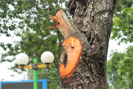 Theo Tiến sĩ Hà, khi cắt tỉa cành cây phải phủ 1 lớp nhựa composite để tránh nước mưa, nấm mốc xâm nhập thân cây, gây mục ruỗng cây