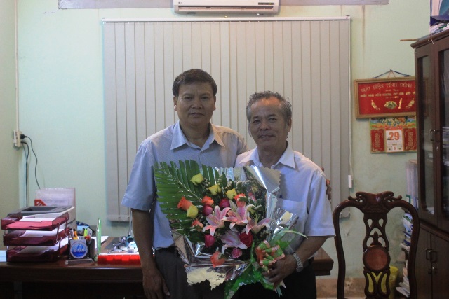 Thầy Phạm Ngọc Sơn và thầy Hồ Sĩ Tương chụp hình lưu niệm