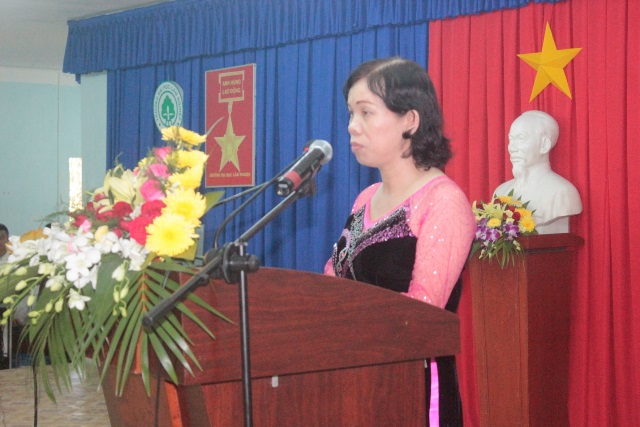 Cô Vũ Thu Hương - Phó Giám đốc đọc thư chúc mừng của Bộ trưởng Bộ NN & PTNT.