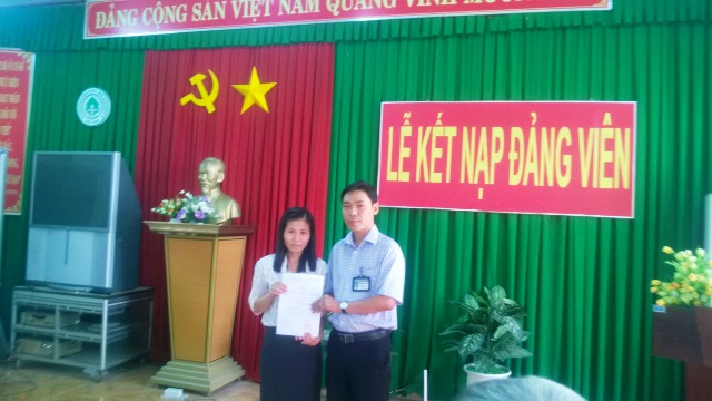 Chiều ngày 31/12/2014, Chi bộ KHCB - LLCT thuộc Đảng bộ bộ phận Cơ sở 2- Trường Đại học Lâm Nghiệp đã tiến hành tổ chức lế kết nạp đảng viên mới cho quần ưu tú Nguyễn Thị Hồng thuộc ban KHCB và quần chúng ưu tú Trần Thị thắm thuộc ban LLCT. Lễ kết nạp diễn ra trong không khí trang nghiêm và theo đúng các trình tự, thủ tục được quy định.