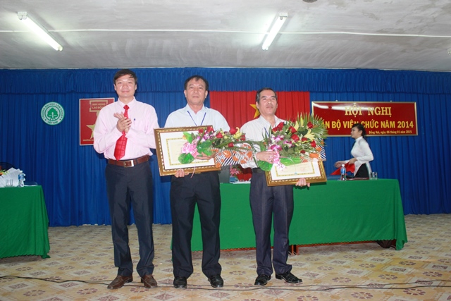 Đồng chí Cao Phi Long, thường trực Hội đồng thi đua công bố các quyết định khen thưởng năm 2014, ngoài 02 cá nhân đã nhận Huân chương lao động hạng Ba, 01 tập thể và 01 cá nhân đã nhận Bằng khen của Thủ tướng Chính phủ còn 01 tập thể và 01 cá nhân được nhận Bằng khen của Bộ trưởng Bộ nông nghiệp và PTNT.