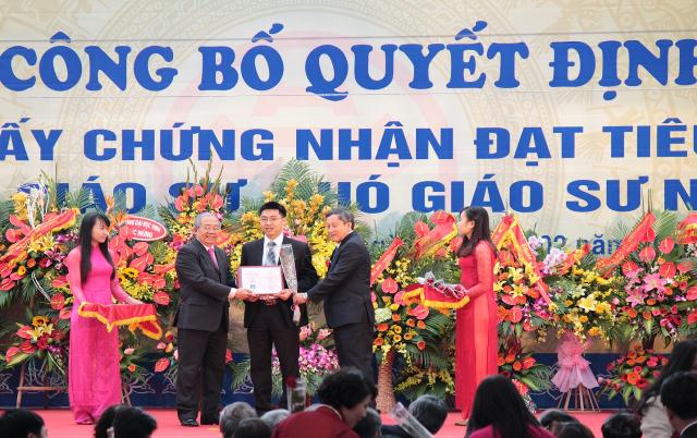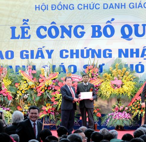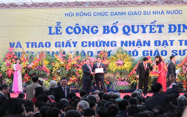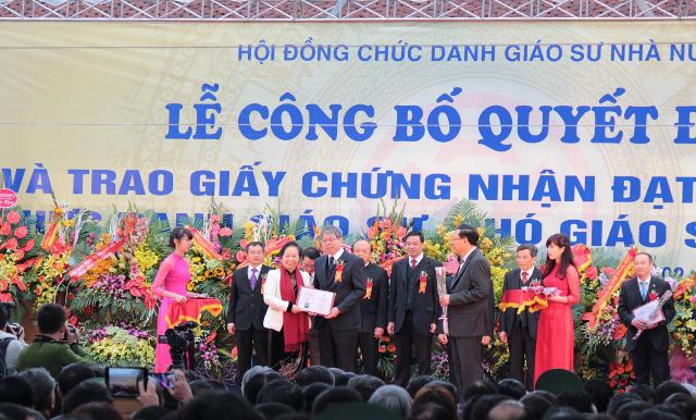 Tân Giáo sư Phạm Văn Chương - Phó Hiệu trưởng Nhà trường nhận quyết định và giấy chứng nhận