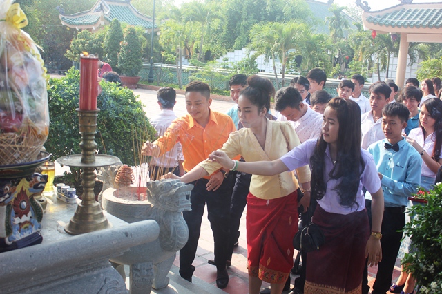 Các em SV Lào và Campuchia dâng hương tại Văn miếu Trấn Biên