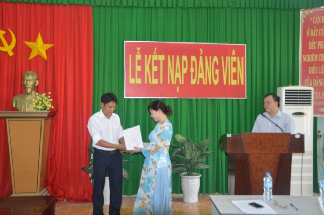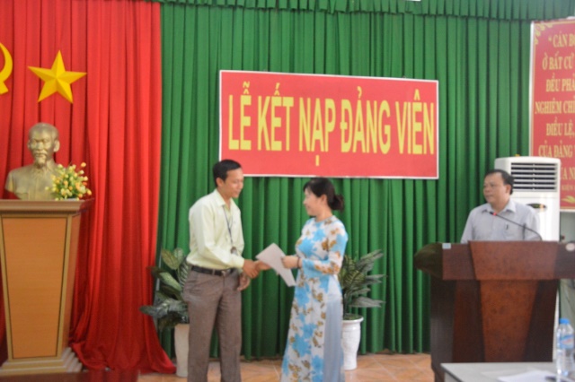 Vinh dự nhận quyết định từ Bí thư Chi bộ trước lá cờ Tổ Quốc, cờ Đảng và chân dung Chủ tịch Hồ Chí Minh kính yêu, 02 Đ/c đảng viên mới đọc lời tuyên thệ và hứa sẽ tiếp tục phấn đấu để luôn xứng đáng là người đảng viên gương mẫu, đóng góp sức mình thực hiện thành công nhiệm vụ chính trị của Chi bộ, góp phần xây dựng Chi bộ ngày càng vững mạnh.