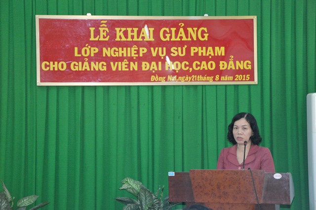 Phát biểu tại buổi lễ, Bà Vũ Thu Hương khẳng định: “Nghiệp vụ sư phạm không chỉ là kỹ năng cần thiết mà còn là điều kiện bắt buộc đối với người giảng viên đứng lớp. Thông qua khóa học, CBGV sẽ mở mang thêm kiến thức và có thể học hỏi thêm những kỹ năng bổ ích từ những thầy, cô có bề dày kinh nghiệm về đào tạo đại học để có thể vững vàng hơn trong công tác giảng dạy”.