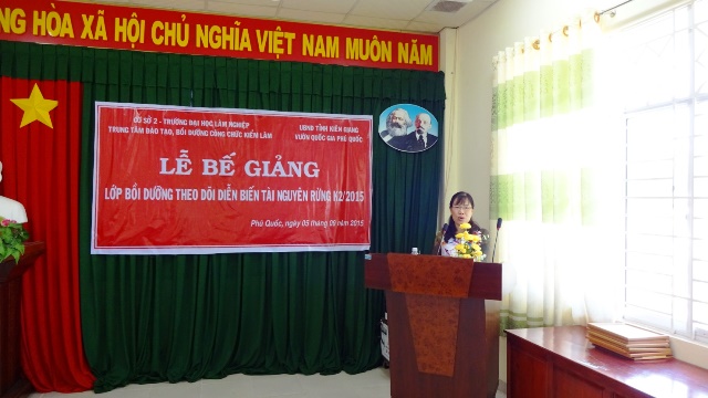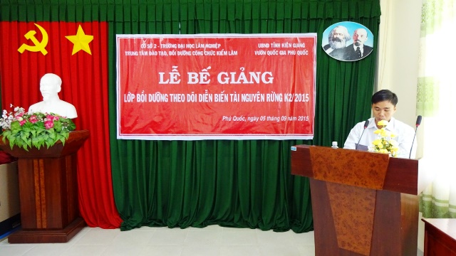 Sáng ngày 04/9/2015, Tại Vườn quốc gia Phú Quốc thuộc tỉnh Kiên Giang, Trường Đại học Lâm nghiệp - Cơ sở 2 kết hợp với Vườn quốc gia Phú Quốc, Kiên Giang tổ chức bế giảng lớp bồi dưỡng theo dõi diễn biến tài nguyên rừng K2/2015.