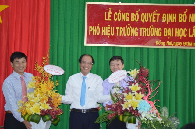 Tặng hoa chúc mừng tân Phó hiệu trưởng